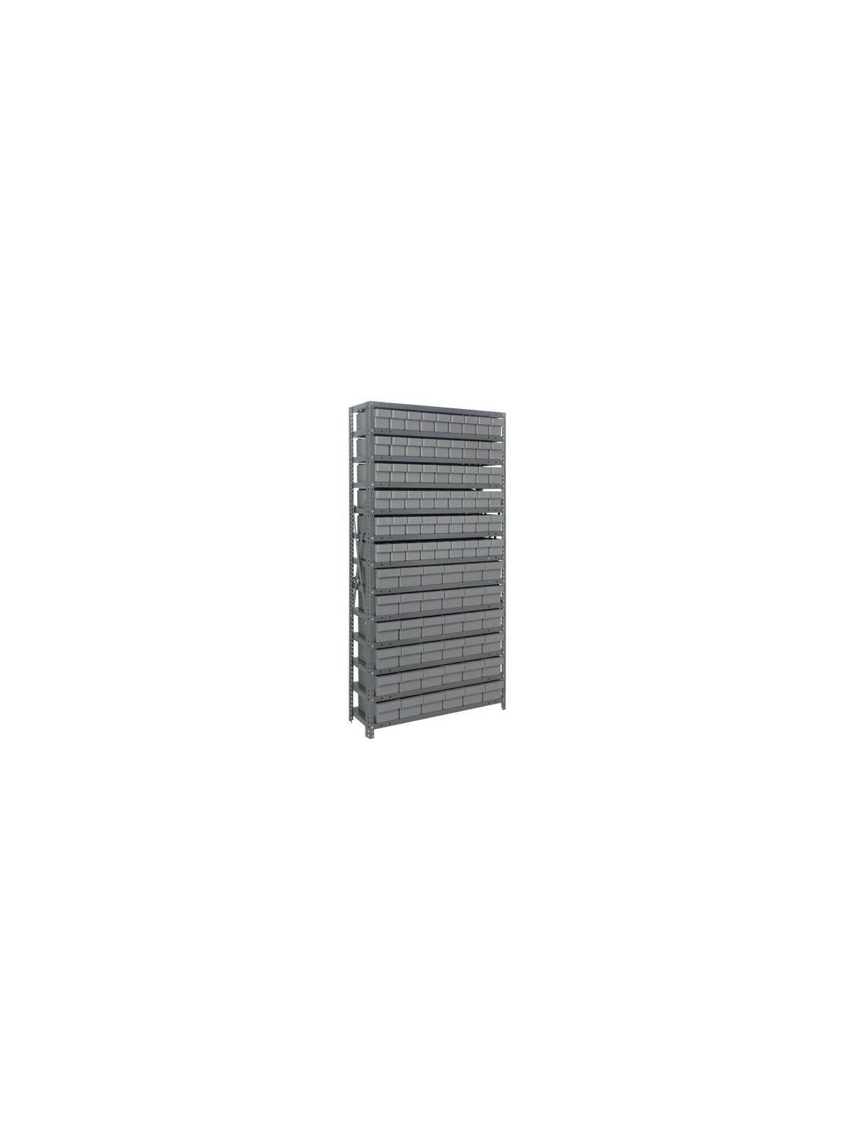Heavy Duty Steel Shelving Units - Save time locating parts using our tough Euro Drawers with our sturdy open or closed steel shelving. 36" wide x 75" or 39" high units offer heavy-duty, high grade shelving with a 400 lb. capacity per shelf. Closed shelving provides a dust free environment for stored parts. Shelving is Gray in color. Drawers are available in Blue, Yellow, Gray or Red. FOB Shipping Point.