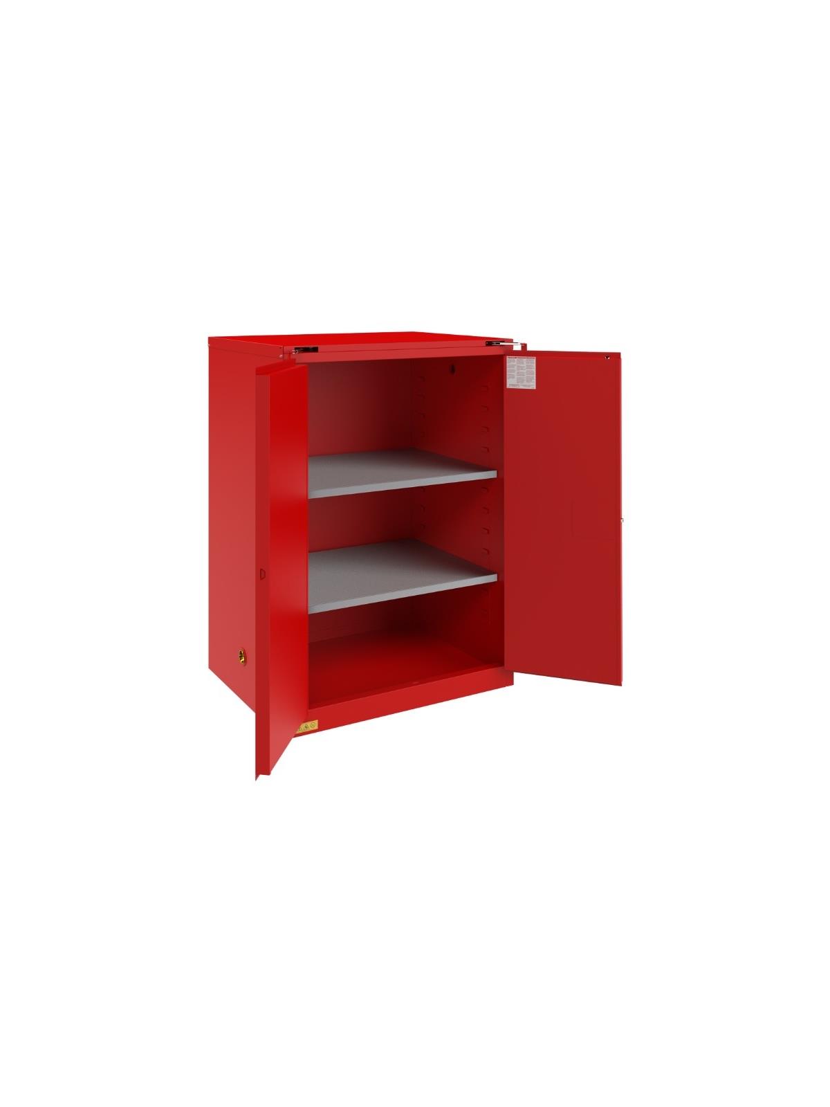 Flammable Storage Cabinets are required by OSHA and UFC in commercial and industrial facilities where flammable liquids are used and stored. Cabinets feature recessed lockable paddle latch and 3 point locking systems which greatly improves security. Bunged air vents on each side of the cabinet allows for greater ventilation. Constructed of all welded Heavy Duty Steel.
