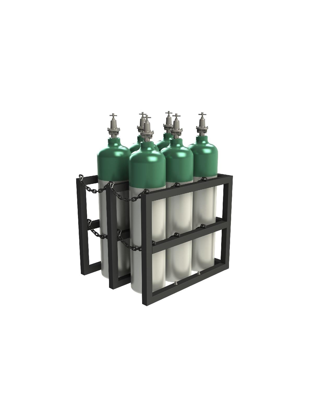 3 gauge, steel tube material can be secured to the floor with included concrete anchors. Includes chains to secure and align the gas cylinders. Organize types in their own rows. Built to meet and exceed quality and safety standards of OSHA, OSHPD, UFC, NFPA and CGA. Ships fully assembled, ready for immediate use. Black, textured, powder coat finish, good for outdoor or indoor use. FOB Shipping Point.