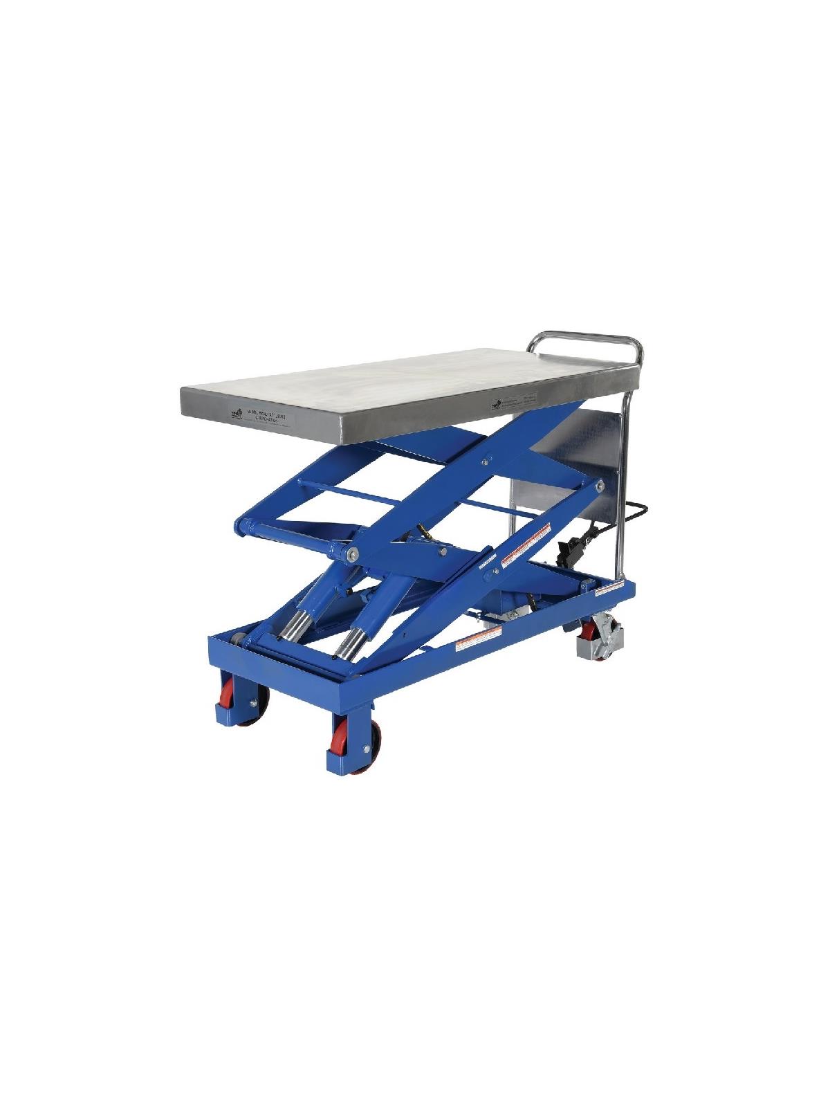 A super rugged mobile hydraulic cart for industrial use. Manually operated foot pedal pump. Durable, precisely engineered hydraulic cylinders. Easy mobility on polyurethane (2 rigid, 2 swivel with brakes) casters. Standard with a Chrome Plated Platform except HCART-2000. Models with suffix TS feature two speed foot pumps. FOB Shipping Point.