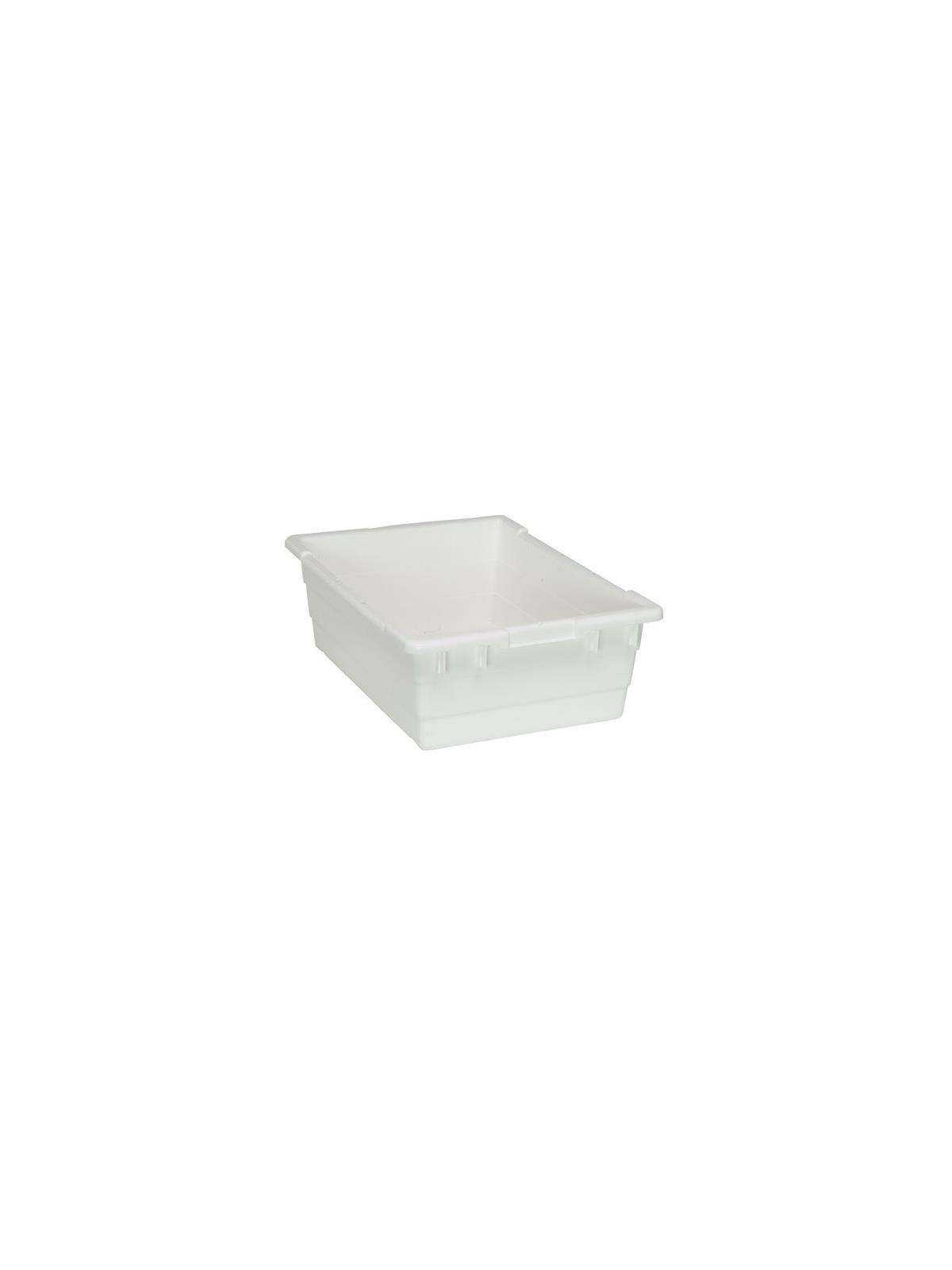 Ideal for production, assembly or order picking. Injection molded from high impact polyethylene -- won't crack, rust or corrode. Easy to clean and maintain. Built in handles and bottom grooves make handling easy. Holds up to 100 lb. loads. 8-1/4" drill hole pattern on bottom if drainage is required. Available in Gray, Blue or White. FOB Shipping Point.