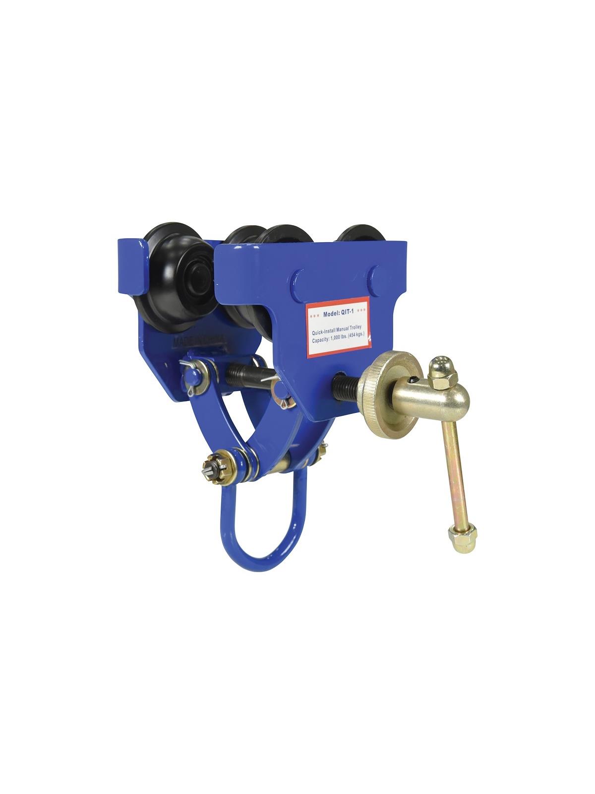 Designed to easily adjust to the width of virtually any S, H, W, and M type I-beam. Width is adjusted with manual screw mechanism. Includes locking ring to prevent trolley width from changing accidentally. Manual screw mechanism may also be tightened to prevent trolley from moving (similar to a Beam Clamp). Each trolley includes four rollers with sealed bearings for long life. A lifting eye is located at the bottom of the trolley for attaching a hoist (sold separately). Steel construction and painted finish. FOB Shipping Point.