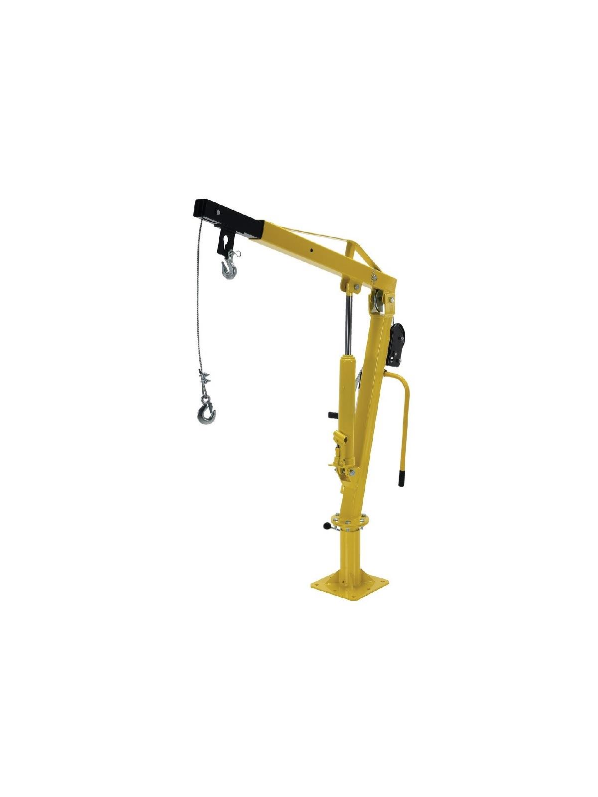 Includes telescopic boom design with manual hydraulic hand pump to pivot boom up and down. Manual cable winch to lift and lower loads. Unit comes with one fixed hook, one chain slot lock, and one cable hook with latch. DC powered option available. FOB Shipping Point.
